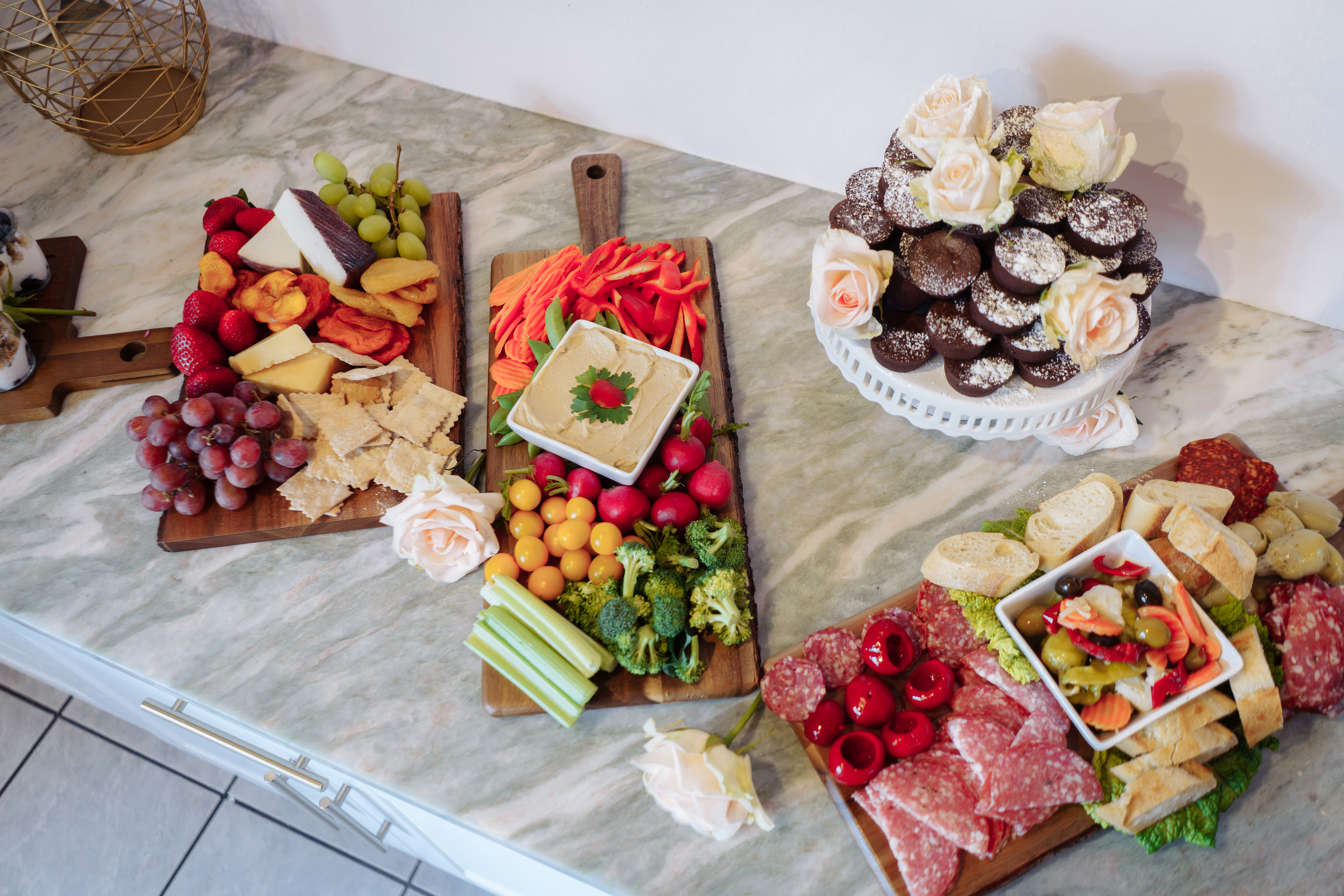 Includes an Assortment of Imported and Domestic Cheese, Cured Meats, Dried Fruits, Fresh Fruit, Nuts, Olives, Vegetables, and Herbs